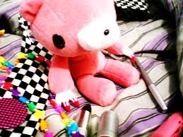 Bom o ursinho Glommy foi criado por Mori Chack ( um designer Japonês), trata-se de um urso cor de rosa com sangue na boca e nas patas ( eu sei vc deve tá pensando tipo assim - O QUÊ!?), eu também tive um pouco dessa reação, até saber dá história do bichinho.